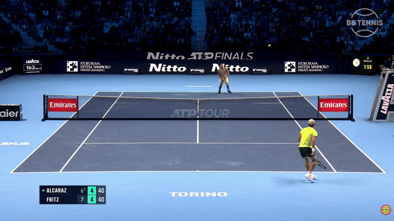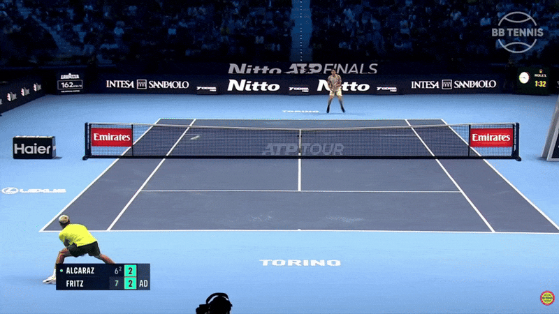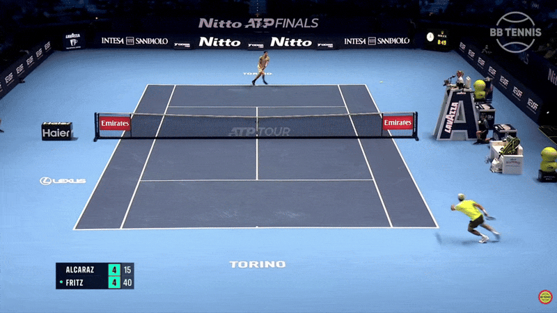 Алькарас перевернул розыгрыш, потому что в какой-то момент Фриц ударил не в открытый корт, а прямо в него.