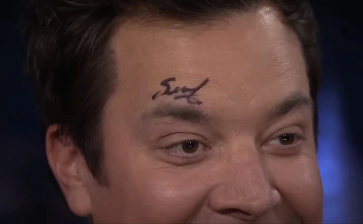 Под конец Фэллон попросил Соболенко подписать ему лоб, примерно как она делала с лысиной своего тренера по физподготовке Джейсона Стэйси.