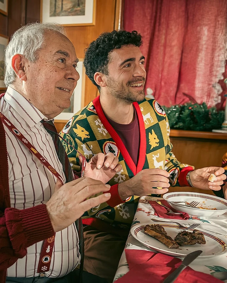 У Гранта вообще большая коллекция классических праздничных свитеров: броских, аляповатых и немного кринжовых (на одном изображены воры из «Одного дома» – тоже с каламбуром).