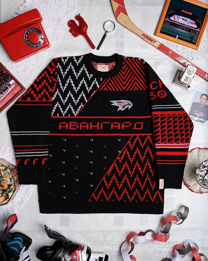Проблема текучести рождественских свитеров, кажется, стоит не так остро в отношении вариаций, выпускаемых спортивными командами, – ну сколько сезонных свитеров с логотипом любимого клуба нужно одному человеку? С другой стороны, некоторые образцы так хороши, что искушают поболеть сразу за несколько команд. Например, кто в прошлом году не успел разжиться веселым кардиганом «Ромы» (на фото) или великолепным джемпером «Байера» с баварскими Альпами, в этом может записаться в разнузданные поклонники «Манчестер Юнайтед». В НХЛ с «уродливым» мерчом похуже – вместо свитеров свитшоты, вместо избыточности и китча – интеллигентная гирлянда. Но эй, уродливость, как и спортивные симпатии – дело сердечное.