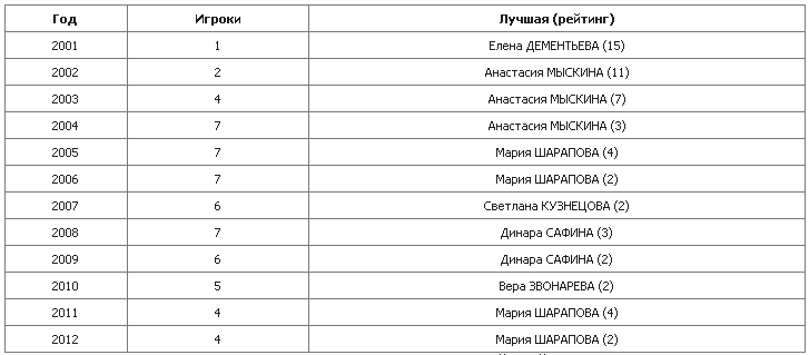 СКОЛЬКО РОССИЯНОК ЗАКОНЧАТ 2013 ГОД В ПЕРВОЙ ДВАДЦАТКЕ РЕЙТИНГА WTA?