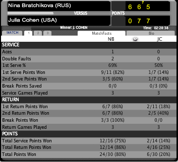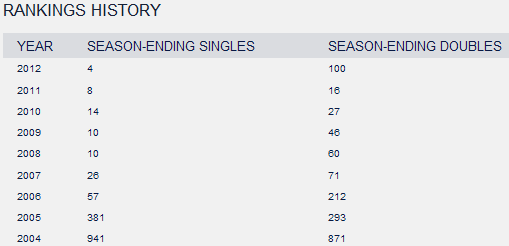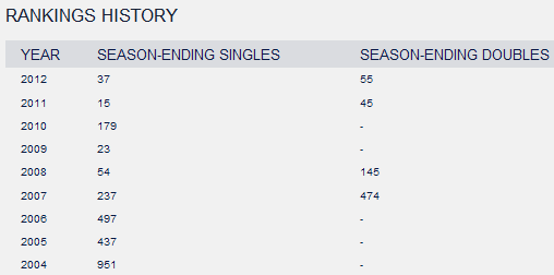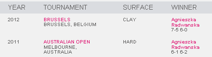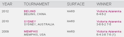 В прошлом году Вика начала сезон 26:0 лучше чем любую теннисистку в последние ... много лет. Надо вернутся к Хингис (37:0) в 1997 году чтобы найти теннисистку с лучшей начало. Однако вряд ли в этом году сможет сделать такую победную серию. Не ясно в какой форме сейчас Вика, но более вероятно что сейчас она хуже чем год назад.Второй раз участвует в Брисбене. В 2009 году завоевала титула не проигрывая даже сет. В финале победила Бартоли.