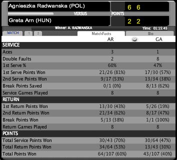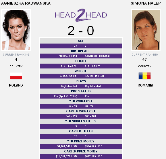 Мне кажется из ТОП-4 Агнешка лучше подготовлена к начале сезона. Поэтому я ожидаю что она победит. Но Симона в состояние затруднить Агнешку серьезно. Будет борьба. Если Аги победит легко это будет доказательство, что действительно она готовилась очень хорошо. А если не сможет, думаю это будет больше из-за хорошей игры Симоны чем из-за плохой Агнешки. Халеп уже накопила самочувствие и факт что Аги в ТОП-5 не влияет существенно на ее игру. Будет интересно увидеть кто захочет сокращать ралли больше - Аги или Симона. Обе могут разыгрывать и длинные ралли, и могут выдумывать хитрые комбинации. В этом плане преимущество Агнешки ожидается, но Симона очень атлетичная и обычно достигает большинство мячей. Интересный матч.