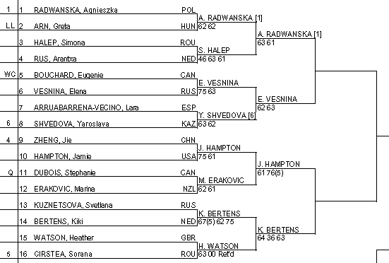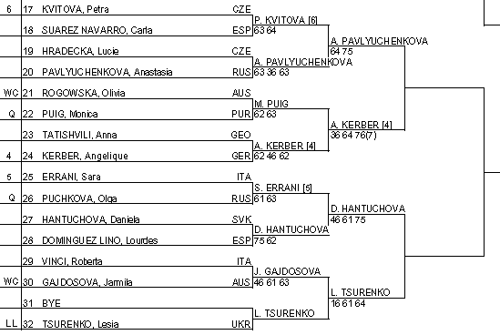 Главное что Настя выиграла и должна обыгрывать лаки лузера в полуфинале.Интересный бы был матч Шарапова-Павлюченко,но не судьба...