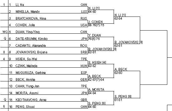 [1] N Li (CHN) vs [8] B Jovanovski (SRB)