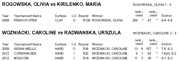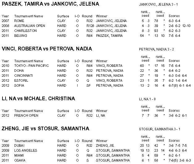 Выставил результаты личных встреч теннисисток кто сыграют в первом круге.