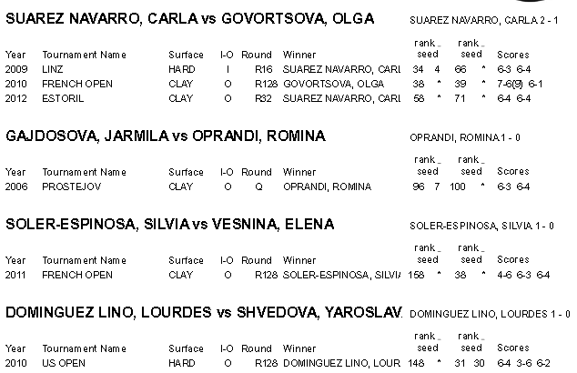Выставил результаты личных встреч теннисисток кто сыграют в первом круге