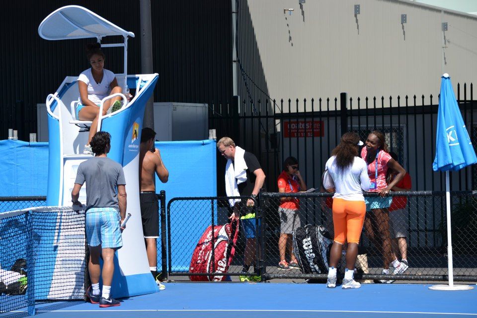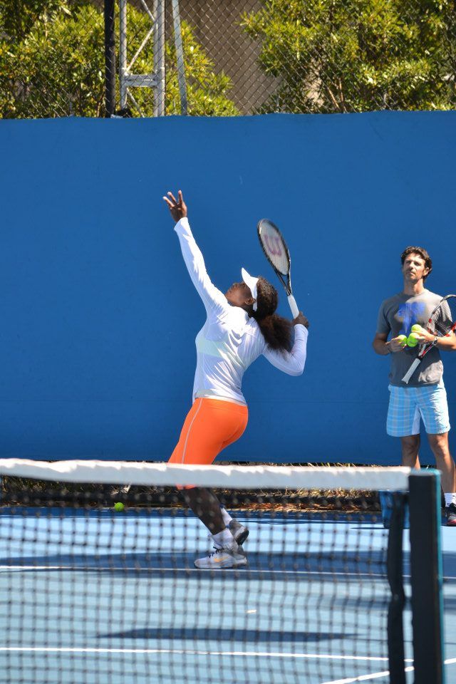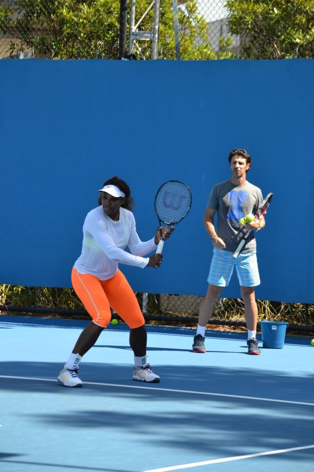 Очень зарактерно было то, что Серена тренировала сегодня. Оба Патрик и Саша были близко к сетки и как возможно быстро посылали мячи Серене чтобы она достигла их и нанесла сильный атакующий удар. То есть Серена практикует упорно самое главное, которое несло ей успех в прошлом и в этом году - быстроту подготовки ударов. Я уже писал, не сила ударов Серены является основу ее преимущество, а быстрота подготовки ударов.