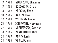 Поэтому решил выставить даты рождения для ТОП-150 теннисисток.