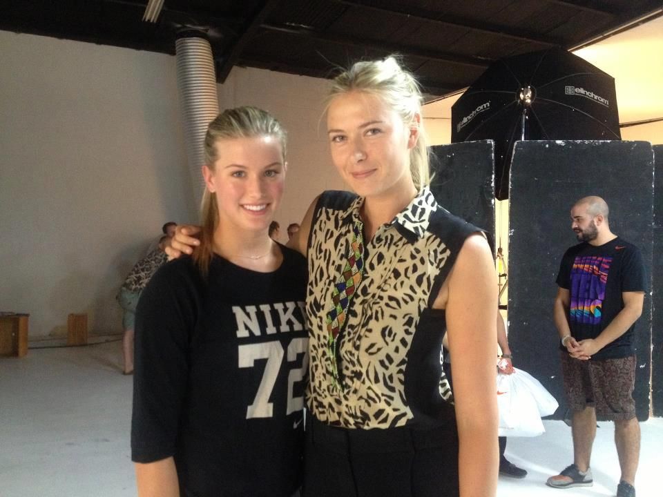Мария имела короткую рекламную фото-сессию для Nike и сделала несколько фото с Eugenie Bouchard которой недавно присоединилась к теннисисткам, представляющих мою коллекцию Nike.