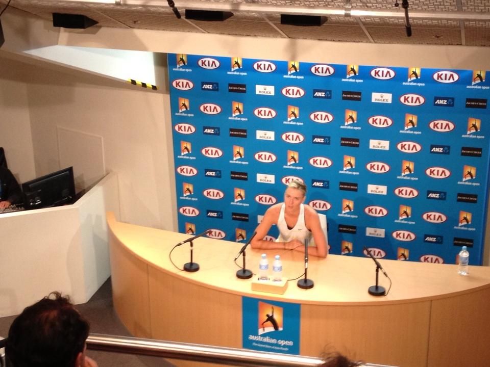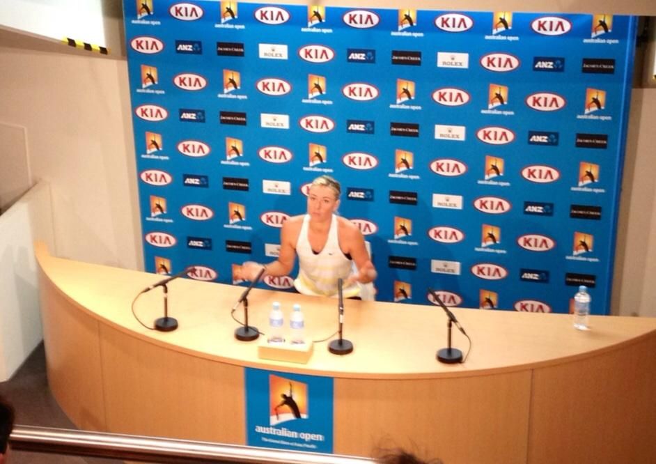 Когда пресс-конференция началась Мария сказала что подарит пакетик SUGARPOVA журналисту, которой задаст лучший вопрос.
