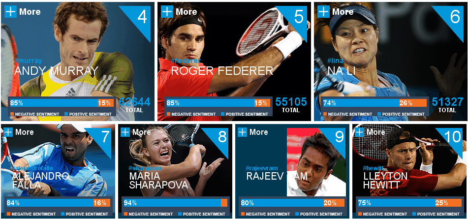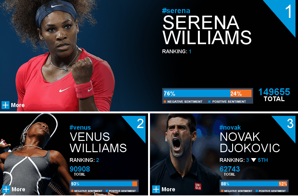 Ожидаемо на первом месте убедительно Серена, потому что ее травма ногу стала главную тему обсуждения. И понятно почему Винус на втором месте, так как ее сообщение о Серене создало интерес у многих.