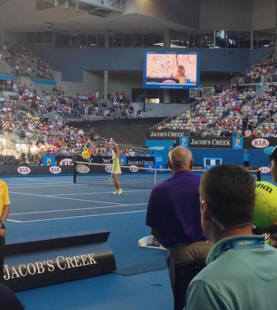 Здесь выложу фото Марии от этого матча. Но вероятно сделаю это после матча Винус, так как хочу смотреть ее матч спокойно.