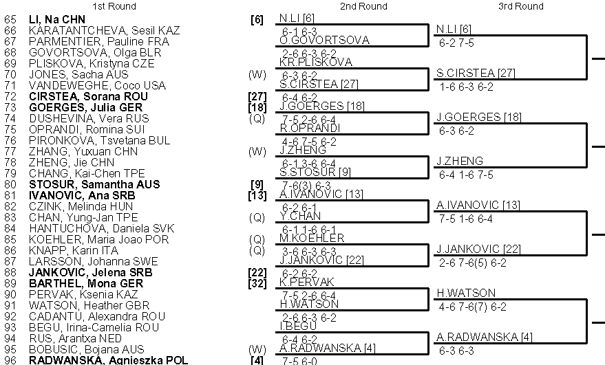 Во второй восьмёрке формальным лидерам Беатрис Хаддад-Майя (11) и Элизе Мертенс (8) будет непросто, так как здесь и Ребекка Петерсон, и Ипек Сойлу, и долговязая Зузана Мацеевска да к тому же и Доминика Патерова.