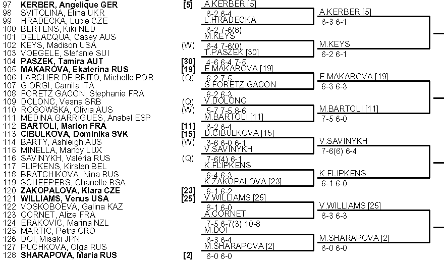 Вторая половина сетки начинается восьмёркой Анны Данилиной (7) и Аннет Контавейт (10). Конечно, они здесь главные фавориты. Но здесь у них в соперницах Камилла Росателло, Джейми Лёб, Наталия Вайдова и Харриет Дарт. Поможет ли Анне победа в «разогревочном» Траралгоне, а Аннет её опыт выступлений за национальную сборную? Кстати, сразу после турнира Контавейт вынуждена будет вновь её возглавить – кондиции Кайи Канепи отнюдь не на высоте.
