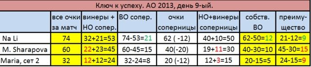 Желтым цветом введены данные для наших теннисисток – победительниц сегодняшних матчей, а в белом тоне - данные их соперниц.