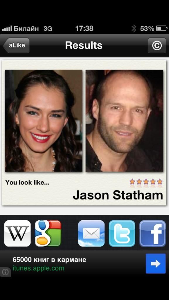 Лена Веснина нашла софтвер которой сравнивает Ваше фото и показывает фото человека, которому Вы похожи.