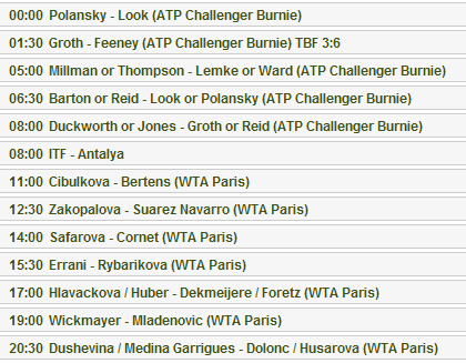 Здесь будут транслироваться матчи с центрального корта австралийского двадцатипятитысячника.Наличие в сетке Аны Савич, а также многочисленных АОшных юниорок в квалификации добавляет интерес к турниру: http://www.burnieinternational.com.au/index.php/tournament/live-streaming