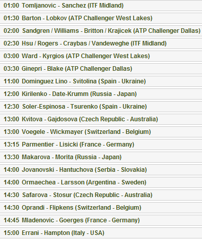 Здесь расписание: http://www.dowcorningtennisclassic.com/wednesday.html