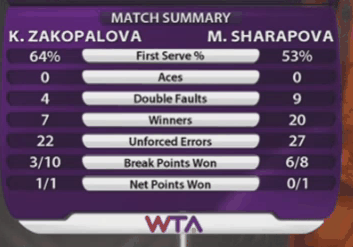Клара по моему сыграла хуже чем могла, но может быть усталость мешала ее. Однако она пыталась затруднить Марию и сумела сделать это несколько геймов особо на подаче Марии.