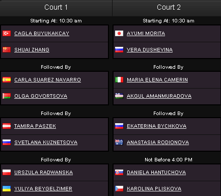 матч Азаренко - Радванска не ранее 18:00 часов по местному времени