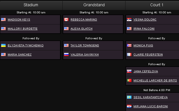 (1)Madison Keys (USA) vs. Mallory Burdette (USA)