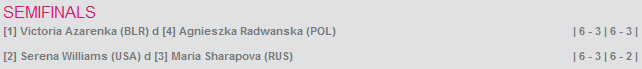 матч Вика - Серена не ранее 18:00 часов по местному времени