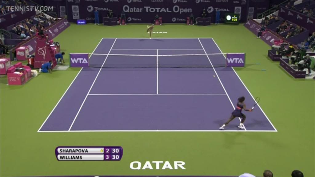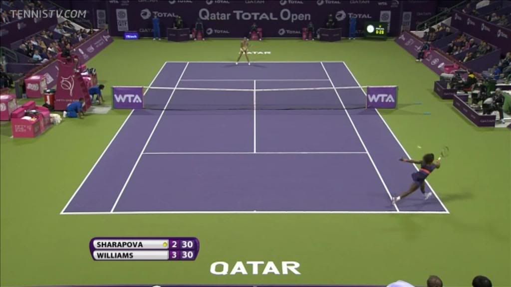 А. Серена находится внутри корта, а Мария вне. Серена ближе к сетки где-то на метр полтора. Почему такая большая разница это очень важный вопрос, но сейчас мы не будем его обсуждать.