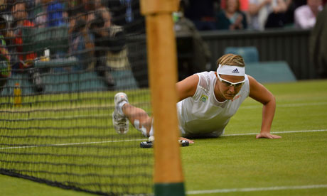 Перед матчем многие говорили о травме Агнешки, тейпы на обоих ногах говорили о том, что Радванска испытывает серьезную боль в ногах, хотя она сама говорила, что это все несерьезно. Но все же возникали сомнения, в том что, она сможет выдержать матч против Лисицки, которая как обычно находится на траве в своей лучшей форме и просто катком прошлась по своим соперницам, чего стоит только победа на Уильямс. Начало встречи было просто убийственным, Сабина лупила по мячу так, как не делают многие мужчины, все тот же злосчастный нет бол на брейк поинте в 7 гейме и вот уже Лисицки выигрывает 6-4 первый сет и уже ведет с брейком во втором сете. Но Радванска не была бы Радванской, если бы не продолжила бороться. И она нашла свой шанс, думаю Сабина немного подсела физически, не так часто уже у нее получалась та убийственная подача в 122 мили в час и Ага блестяще воспользовалась этим шансов склонив чашу весов во втором сете в свою пользу 6-2. Падение Лисицки продолжилось и в сете номер 3. 3-0 повела Радванска. Но вот тут то одна малешая расслабленность Агнешки сыграла свою роль. 3-1 15-0 и почему то очень легко и невнятно были одны 3 мяча подряд 15-40, Радванска попыталась было спасти гейм, но при 30-40 получила невероятный силы хлопок с форхэнда.... Сабина вернулась в игры. Тут опять же нужно отметить харатекр Радванской, она продолжила бороться и после этого, отыграла подачу на матч, при счете 6-5 в свою пользу была в двух мячах от победы, но что делать если в такой ситуации тебе подают втору подачу со скорость 100-110 миль в час? и вот 7-7 30-40 Радванска выходит к сетке играет в длинну с лета и аут, думаю тут всем все стало понятно. Мне в тот момент было очень обидно, очень тяжело проигрывать так, но думаю Агнешке было гораздо тяжелей чем мне, тяжело, когда ты делаеш все для победы проиграть именно так. Но несмотрят на это я выражаю ей огромную благодарность, смотря на таких людей хочеться продолжать жить и дальше смотреть их матчи, спасибо ей, что я живу имено в это время и имею возможность наблюдать за ее игрой. Надеюсь у нее еще будет шанс взять ТБШ.