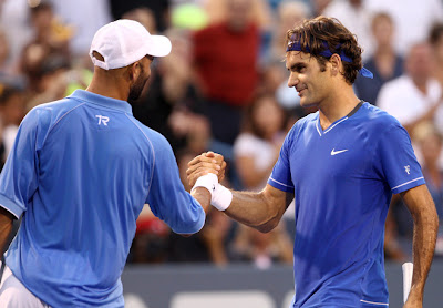 Надаль был вообще повержен в двух партиях, ну а с Давыденко хоть и пришлось помучиться, но россиянина Блейк таки одолел. Никаких шансов Джеймс не оставил и Давиду Налбандяну в полуфинале. Кто-то сомневался, что в финале Блейк встретился с Федерером, который уже в третий раз за год вставил не палки, а настоящие бревна в колеса американца? Снова уверенная победа швейцарца, снова с "баранкой", на этот раз в решающем сете и снова до исторического результата, лучшего в карьере, Джеймс не смог сделать лишь один шаг.