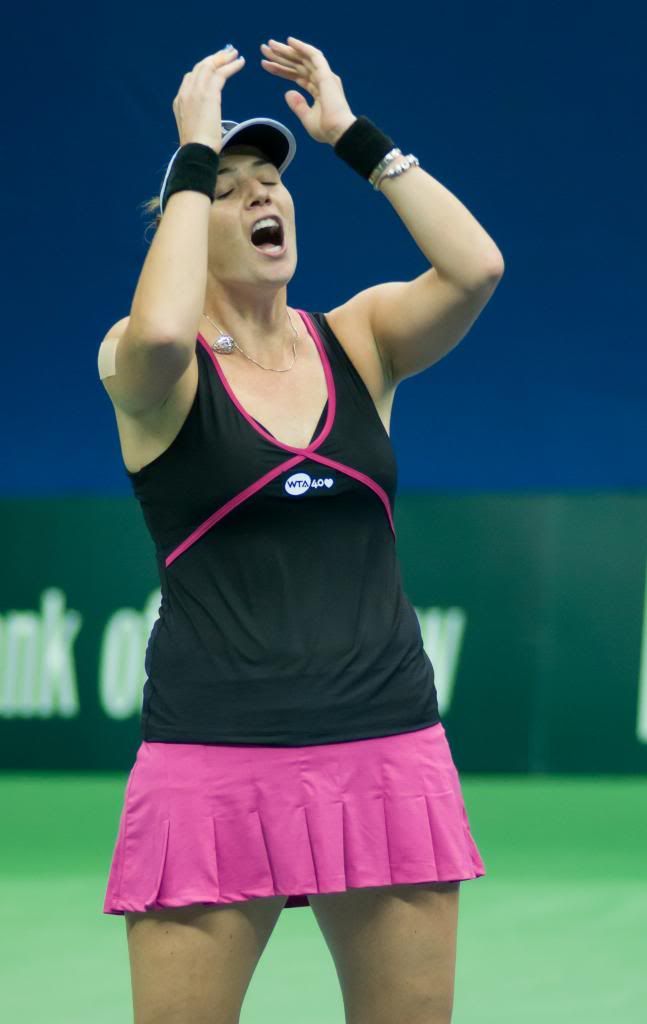 Конечно, я субъективна, но мне здесь хорошо. Правда, писать про сам турнир я не очень хочу. С одной стороны, все слишком привычно. С другой стороны, не секрет, что «постояльцы» Кубка Кремля в первые дни начинают смотреть матчи часов в 5-6, а до этого здесь совсем другие развлечения – собирание автографов, фотографии спортсменов и со спортсменами, а также немногочисленными селебрити, общение, прогулки по ВИП-зоне. Зато у меня накопилось некоторое количество фото за первые три дня – не пропадать же добру. Так что предлагаю вам свои фотозарисовки с турнира – в основном, как всегда, женской части. Здесь я отдыхаю и не пытаюсь в борьбе со освещением Олимпийского снимать удары и движения, фотографирую только лица и эмоции.