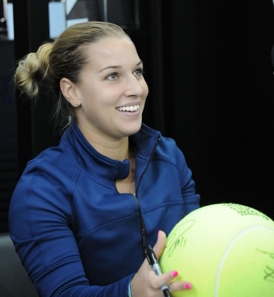 Доминика Цибулкова раздает автографы. Миниатюрная обоятельная девочка. И почему она мне так не нравилась раньше?