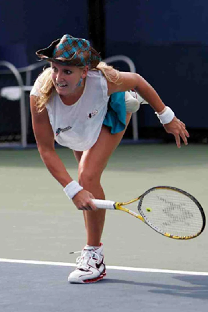 Однажды на US Open она даже вышла на матч в ковбойской шляпе, но играть ей в таком виде не позволили и отправили переодеваться. Как в школе:-)