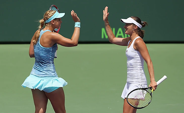 В Индиан-Уэллсе пришлось капитулировать уже в первом круге, зато в Майами получился титул да какой: в четвертьфинале ушли с семи матчболов, а в финале отыграли дефицит в сет у второй пары мира Екатерины Макаровой и Елены Весниной. Спустя несколько месяцев российский дуэт вновь встал на пути Хингис – в финале US Open.