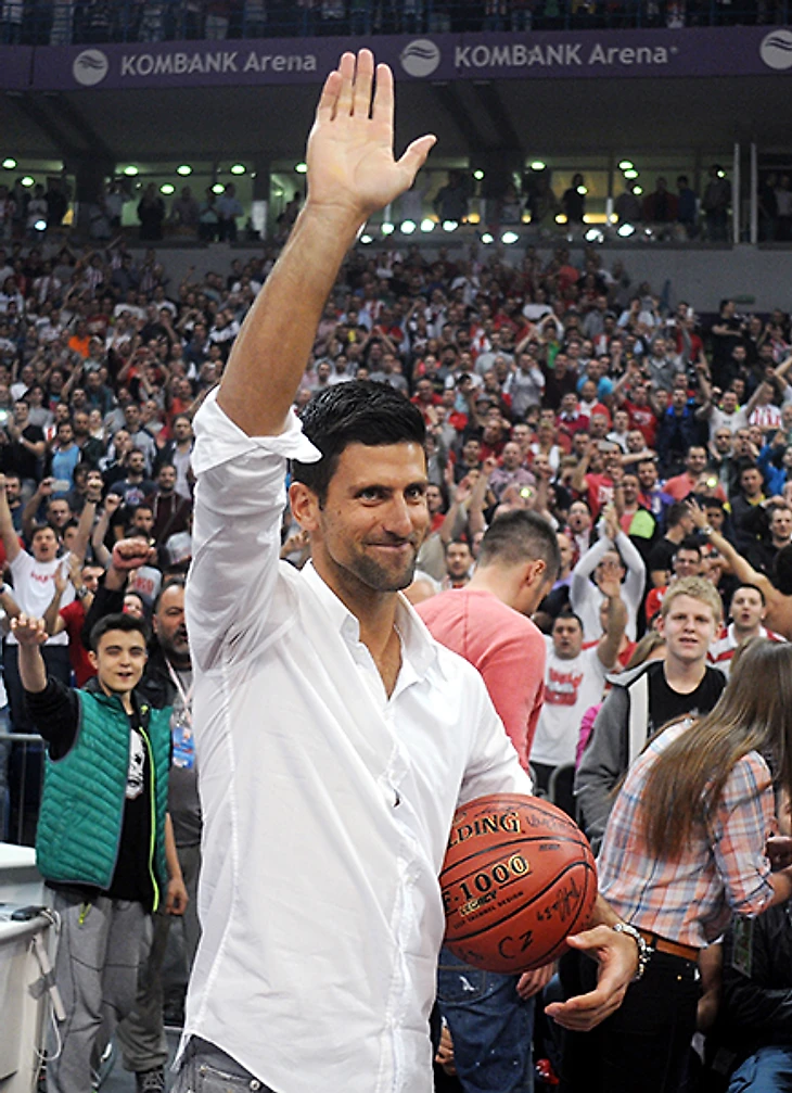 Сербский теннисист Новак Джокович на полуфинальном матче кубка Европы по баскетболу между «Црвена Звезда» (Белград, Сербия) – УНИКС (Казань, Россия).