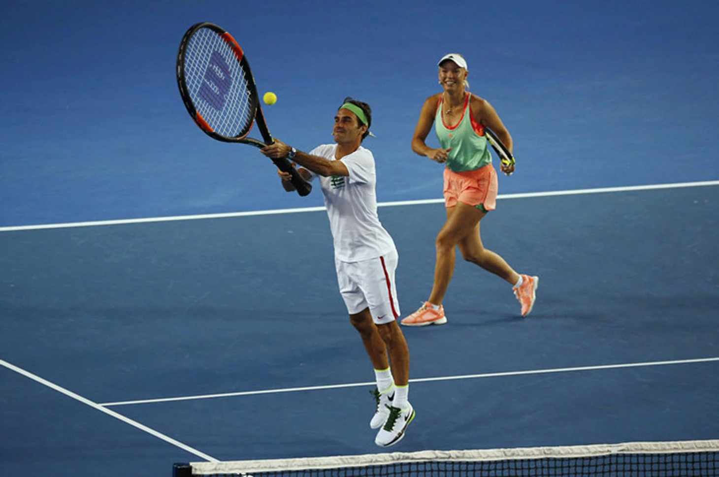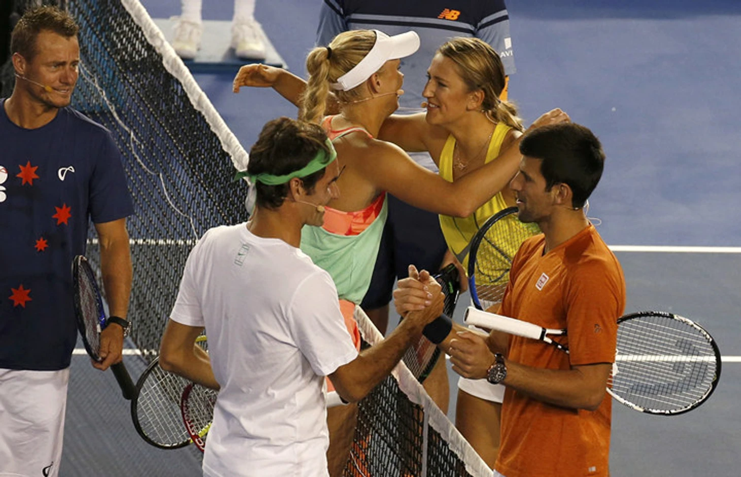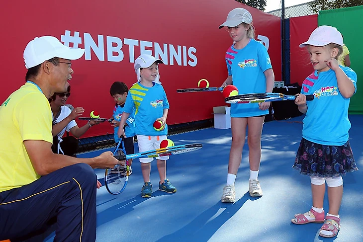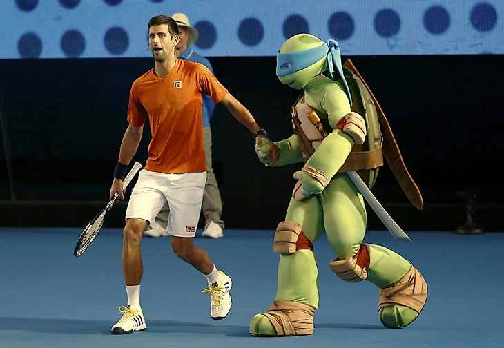 В субботу в Мельбурне в преддверии первого в сезоне турнира «Большого шлема» Australian Open прошел традиционный Детский день. В рамках праздника тенниса для детей были организованы разные мастер-классы, а такие уважаемые люди, как Роджер Федерер, Новак Джокович, Виктория Азаренко, Каролин Возняцки, Милош Раонич и Ллейтон Хьюитт, развлекали зрителей тем, что играли огромными ракетками и веселились с Черепашками-Ниндзя, а в какой-то момент плавно перешли на фут-теннис.
