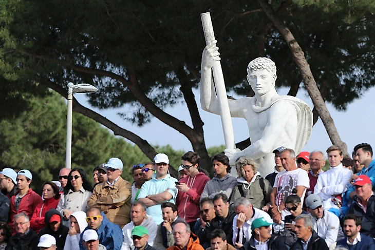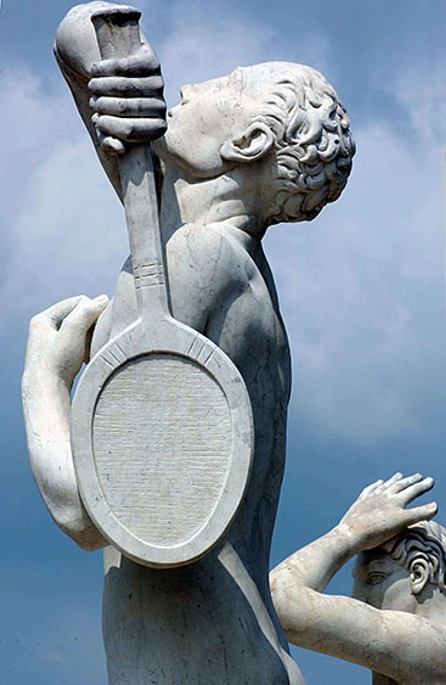 Одной из самых примечательных деталей, о которой каждый год пишут посетители турнира в Риме – это окружающие корты величественные статуи атлетов в античном стиле. Зрелище по-настоящему потрясающее.