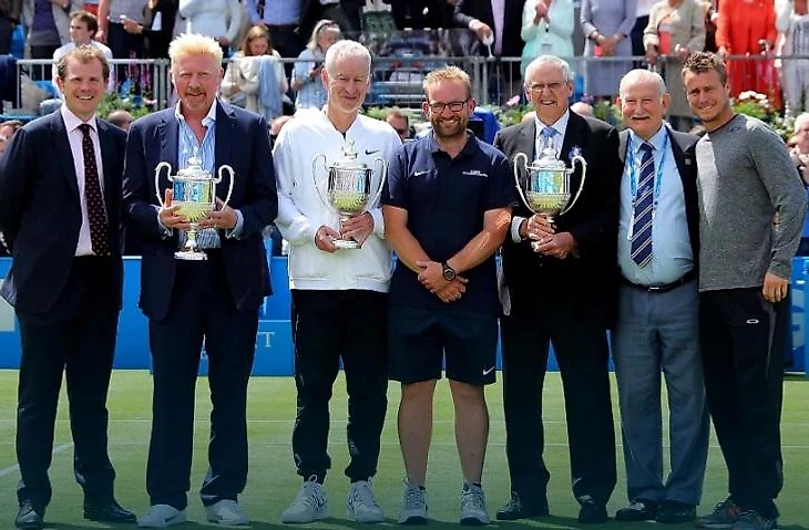 Накануне интервью Борис Беккер принял участие в церемонии чествования теннисистов (вручали копии кубков Queens Club), которые выиграли турнир Aegon Championships по четыре раза. Это Рой Эмерсон, Джон Макинрой, Борис Беккер и Ллейтон Хьюитт. (Прим. В этом году Энди Маррей впервые стал пятикратным победителем этого турнира. С прорывом, Энди!)