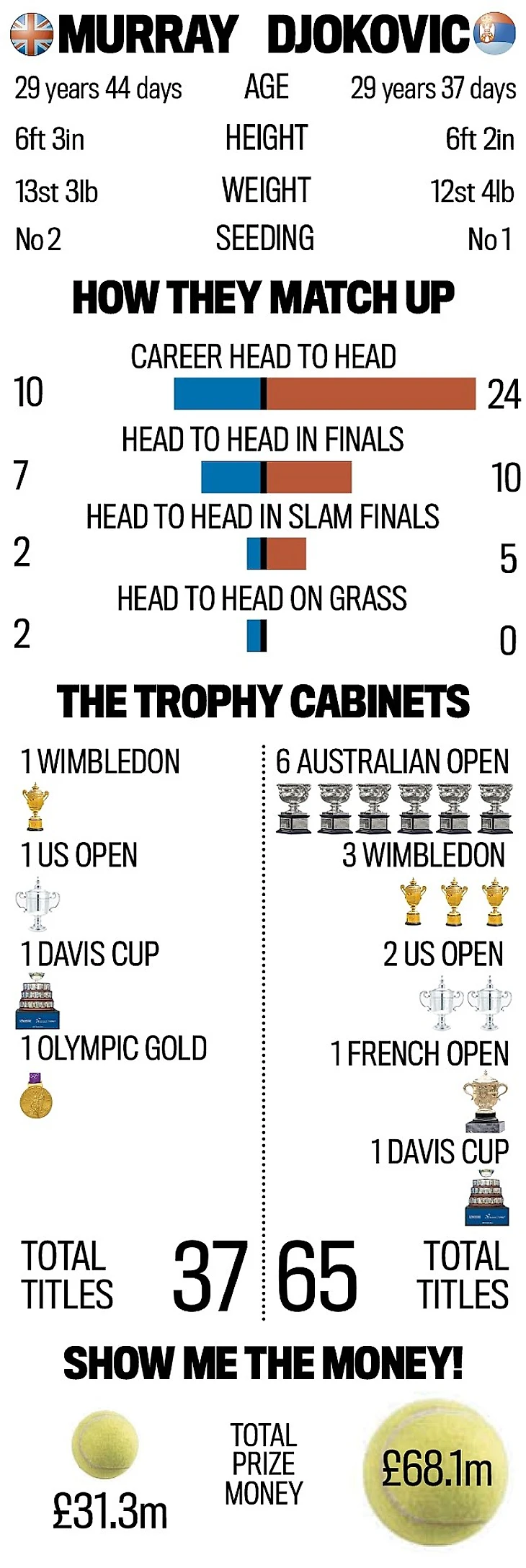 Статус молодого родителя - одна из множества вещей, которые объединяют Маррея с Новаком Джоковичем, единственным игроком в мире, который сейчас превосходит его в избранной ими профессии. Всё указывает на то, что именно эти двое будут творить историю нынешнего Уимблдона, т.к. со времен расцвета Рафаэля Надаля и Роджера Федерера не было такой пары игроков, чьи шансы на выход в финал выглядели бы столь убедительно. Именно так случилось на «Ролан Гаррос» - и уж если они встретились на покрытии, игра на котором считается ахиллесовой пятой Маррея, то вероятность такой встречи на траве тем более велика.