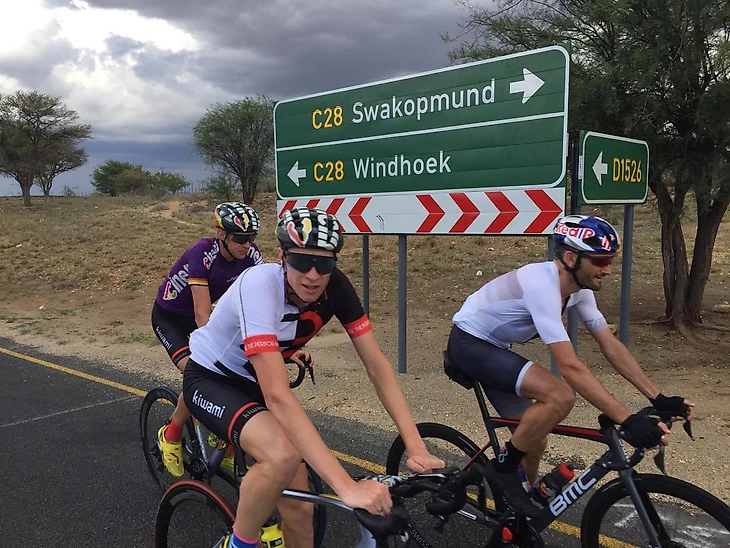 «На сбор в Намибию мы поехали сразу по нескольким причинам: во-первых, чтобы потренироваться в спарринге с голландской командой и со звездой триатлона из ЮАР Ричардом Марреем. Во-вторых, этот сбор был гипоксическим – он проходил на высоте 1700 метров над уровнем моря, а это идеальная высота для закладки базы перед сезоном. Кроме того, мы сделали два старта в соседних странах, которые тоже проходили на высоте выше 1500 м. В большой интернациональной команде тренироваться легче и интересней. Узнаешь много нового, а также поднимаешь уровень языка. В Намибии очень хороший жаркий климат, мало осадков. Уникальная природа: жирафы, кабаны, антилопы, и очень много обезьян».