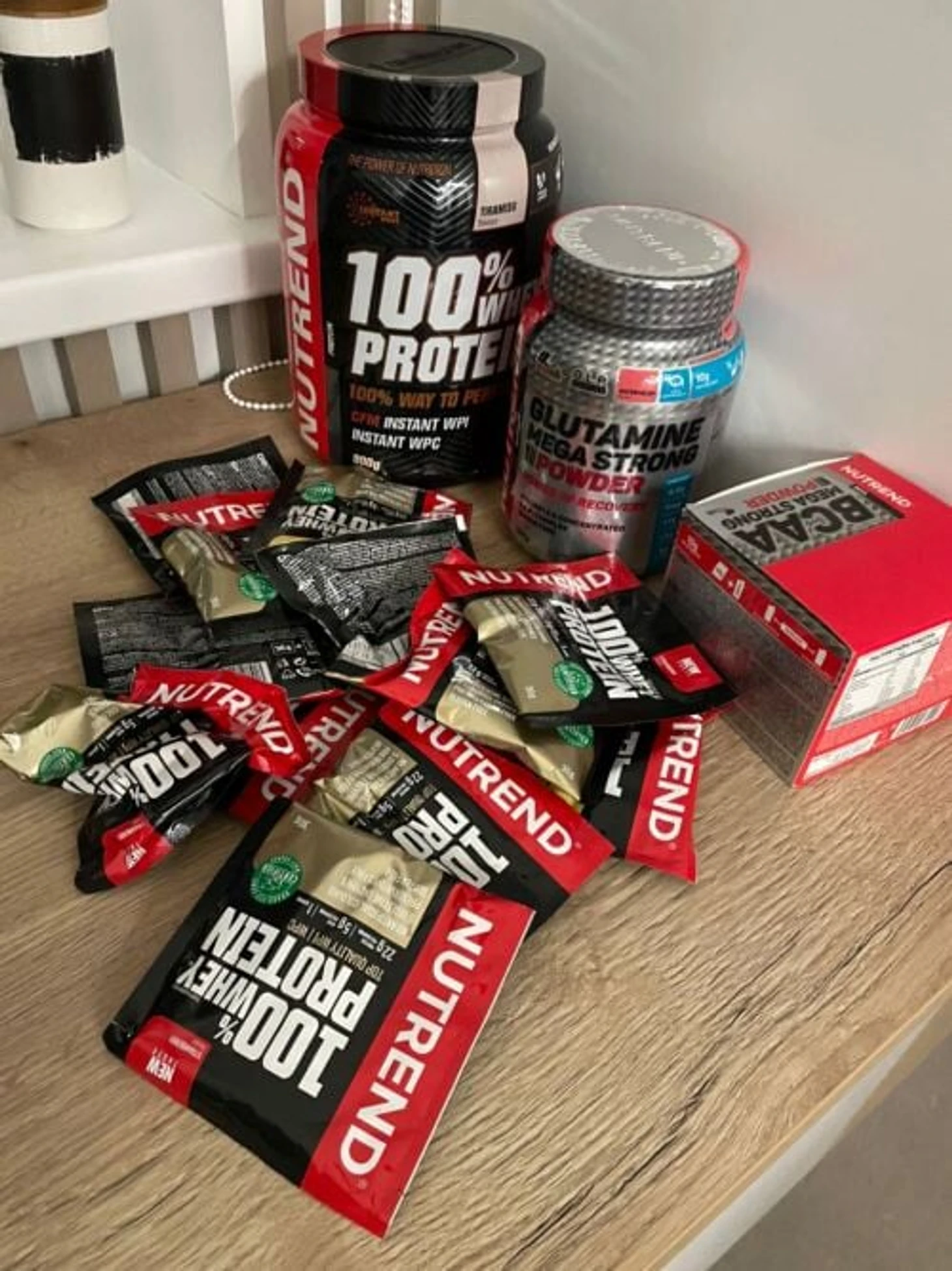 Мне необходим белок, но я тяжело переношу мясо. Поэтому добираю с помощью протеина от NUTREND, он вкусный как молочный коктейль, усваивается легко, не чувствую тяжести. Обязательно в рационе ВСАА, принимаю до тренировки. Сейчас из обязательного еще инозин – помогает восстановиться, улучшает кровообращение. Возвращаю объемы, поэтому принимаю L-глутамин – тоже для восстановления.