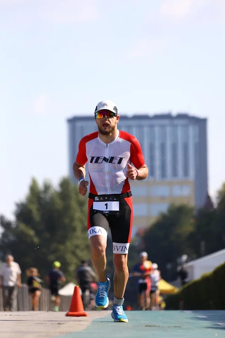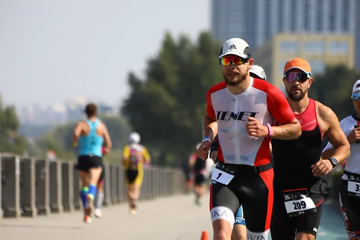 Самара- красивый город на берегу Волги. Отличная набережная, шикарно все благоустроено, роскошные памятники архитектуры и великим героям древности. Слот на 113км в Самаре я купил сразу как только открылась регистрация, поэтому номер как и на Завидово был роскошный - "1". После гонки в Питере мы с тренером провели работу над ошибками перестроили систему тренировок по велосипеду. Я купил роллерный станок (обычный станок ,где велогонщик садится на велосипед и крутит колеса поверх специальной платформы с роликами, ролики вращаются с той же скоростью , с какой райдер раскручивает заднее колесо) , чтобы улучшить координацию и постараться меньше сил тратить на "рулежку" и баланс. Так же мы увеличили количество тренировок на улице, темповые блоки к Самаре все были сделаны на улице. Плавание: я снова обратился к моему тренеру Паше, и он старательно поправил два аспекта - левую руку ,чтобы она не тонула и ориентирование на воде, так же в последней тренировке мы начали корректировать глубину гребка, чтобы рука была более прямой под водой и был мощнее гребок. С бегом дела обстояли туго, после Питера я травмировался с воспалением надкостницы и бегать нормально мы не могли, сочетали бег босиком по траве , асфальту и дорожке стадиона, чтобы уменьшить нагрузку на ногу, попутно я мазал ногу чем только возможно, чтобы убрать опухоль ,но это не дало почти никаких результатов, стало легче,но сразу после любой темповой все возвращалось, опухоль так и не спала к Самаре.