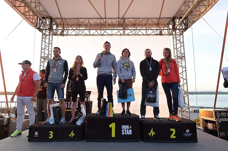Итоговое время 4:37:08, улучшил личное время на 5 минут. Рекорд на плавании 26:30 (привет великая река Волга и спасибо тебе). Средняя скорость на веле 36км/ч, бег средний темп 4:27/км , всего на 4 секунды на км хуже Геленджика, что с больной ногой успех!