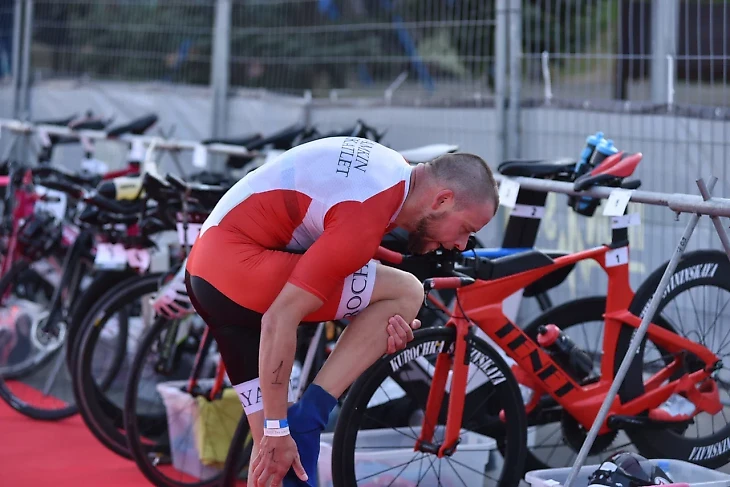 Заранее я провел анализ участников в моей возрастной группе и просмотрел их результаты на дистанции 70.3 и олимпийках(1,5км плавание, 40км велогонка, 10км бег), чтобы понять расстановку сил на гонке, и возможные варианты на победу. В целом в нашей группе было 5 человек, которые могли претендовать на подиум. Я знал результаты ребят и был настроен побороться за подиум, потому что реально шансы были на лицо. В этом мне помогла Таня, я провел инструктаж где ей стоять и отслеживать мою позицию на плавании, веле и беге, и так же оперативно сообщать мне о расстановке сил. Не доработал в последствии как я потом осознал с инструктажем), но Таня сама разобралась. Тактика была простой, отдубасить плавание по течению и отыграть на нем как можно больше,но не упароться, далее сесть на байк и долбить его в свою силу это примерно 200-210вт , что примерно равно 3 вт/кг массы тела, на беге начать по 4:20 и там уже как нога себя поведет, тренер предупредил, что основную часть я отработаю ,но придется пострадать...вот такой простой план.