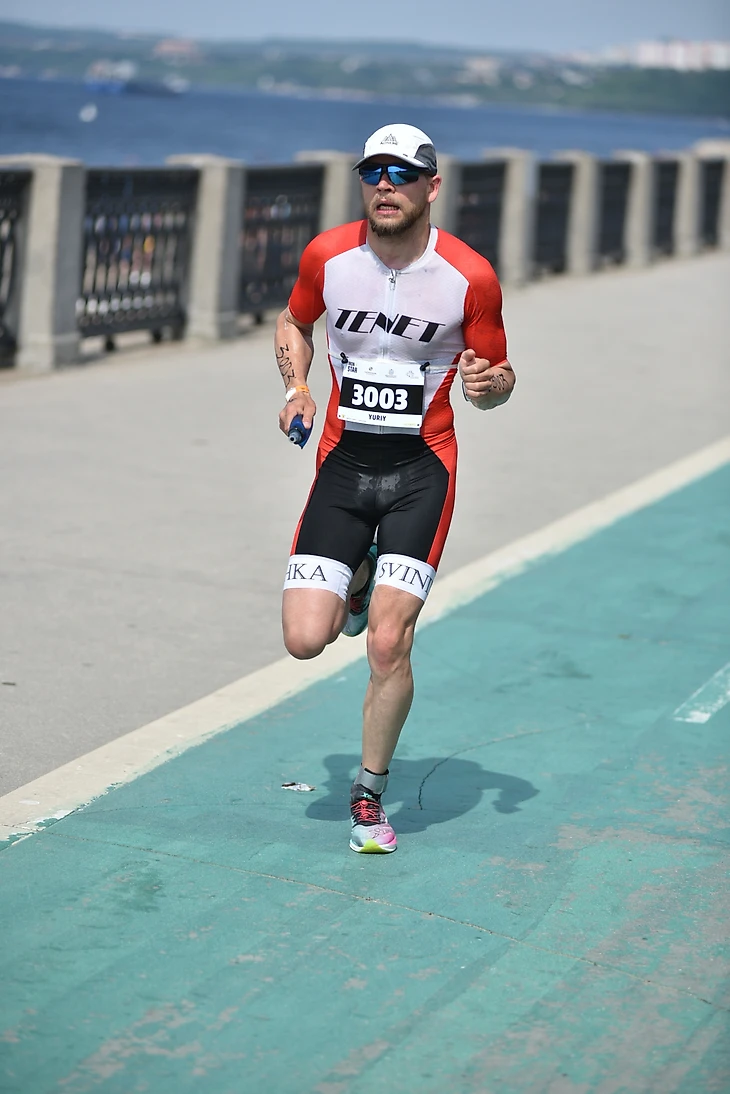 Плавание Свисток...нажал кнопку секундомера на часах, полетел к краю Баржи, шаг в неизвестность ,опора улетает из-под ног страшно капец ,полет и вода смыкается над головой, очки не слетели, сразу беру темп и начинаю разминку до первого буйка, тяжело ориентироваться плывём вбок, вместо того чтобы плыть по течению, попутно боремся с сильными боковыми волнами, у Баржи штиль, она закрывает нас от волн, а уже дальше идёт борьба с водой, стараюсь расслабиться и поймать темп,отдаться воде и катить на длинном гребке. Кажется что плавание к первому бую это целая вечность ,просто выживание на волнах, первые участники уже доплывают к нему наплываю на одного спортсмена , ухожу в сторону, вот Буй уже рядом, удар головой об него, ноги тянет вниз, волна прибивает меня к нему и тянет под него, кажется что он огромен, не могу ничего сделать , ноги тянет вниз к стропе, понимаю, что я не плыву, а бьюсь об него на месте и никуда не двигаюсь, накатывает паника, в агонии начинаю лупить руками и поддавать ногами чтобы оторваться от буя , дикие усилия ,не знаю сколько времени прошло,но казалось ,что очень долго... Вырываюсь рывком вперёд, выхожу на простор подальше от поворотного буя, как меня не загасили другие участники я не знаю. Ищу глазами следующий буй, я вышел на траекторию и надо плыть просто по течению прямо, дыхание сбилось, закололо в боку, понимаю,что много потратил сил и перешёл сразу же в режим экономии энергии , шел на спокойном длинном гребке ,чтобы восстановить дыхание и дать немного отдыха рукам и ногам, примерно через 200м все пришло в норму и начал ориентироваться на буи. Волна была лютая, бешеная, штормило знатно, но я расслабился и отдался стихии, понятно было одно,сопротивление бесполезно надо грести как на тренировке и быть податливым каждому движению волны, вошёл в ритм , буи приближаются , врезаюсь голову в буй и опять ещё раз тоже самое, волна бьёт меня об буй и затягивает под него, я снова резко начинаю молотить руками и добавлять ногами чтобы выйти из опасной пучины, получается... Понимаю что так дела делать нельзя и надо внимательно смотреть и не подплывать к буйкам так близко, просто это опасно для жизни, снова сбил дыхание но уже не так, первого раза хватило,чтобы на втором я уже быстрее смог выйти из ситуации. Продолжаю катить ,пришел в себя и вижу некоторых участников,кто то меня обогнал, попробовал встать в ноги, немного проплыли, потом я отпустил. Продолжаю в своем темпе уже подальше от буйков и вижу скоро треугольник. Плыву уже начинаю немного раскатывать на мощном гребке, разминка прошла можно поработать , вижу треугольный буй, смотрю на берег, арка берега позади, буй снесло дальше вперёд, понимаю что после разворота надо будет работать против течения и что там потеряю много времени, иду прямым курсом на треугольник, беру большой радиус чтобы меня снова к нему не прибило ,прохожу его, и начинаю нести к берегу напрямую,вижу как ещё один участник тоже плывет к берегу, а не в обратную сторону к арке, в правилах ничего по этому поводу не было, не стал теряться и тоже ускорился к берегу. Доплываю к берегу , поднимаюсь на ноги, нажимаю отсечку часов 18:50, а казалось как будто прошла целая вечность , думаю ладно все по плану, быстро бегу вдоль берега к арке.