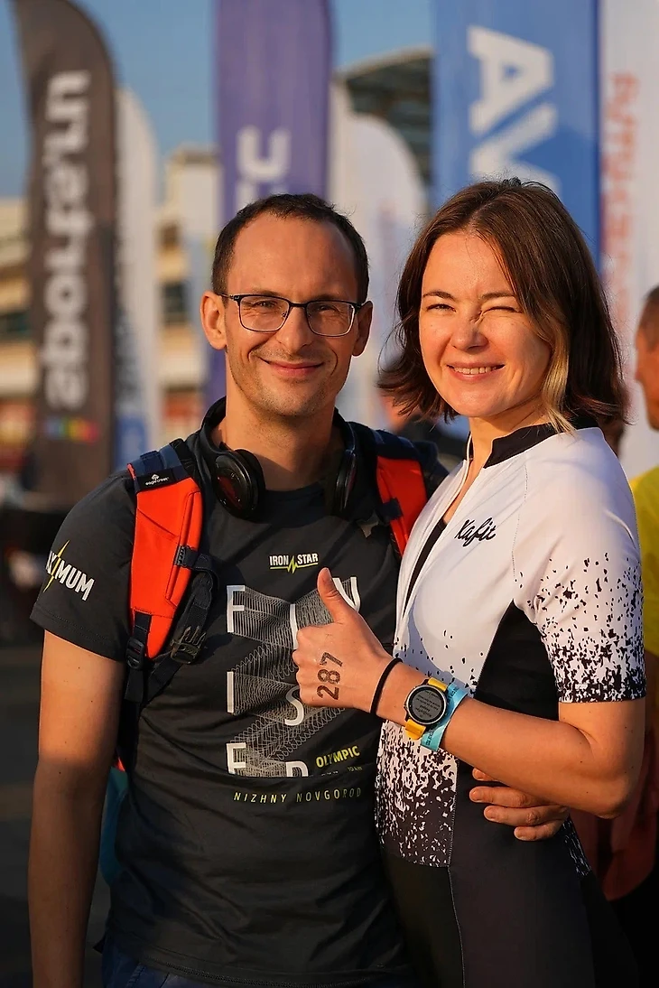 Крылатское выбрала из-за локации, очень удобно и ехать никуда не надо, все под боком. Не надо подбирать отели, транспорт, заморачиваться с перевозкой велосипедов, акклиматизация. С мужем была договорённость из-за неопытности. Я его суппот на старте Ironstar olimpic 2023 в Нижнем Новгороде, а он суппортит Ironstar olimpic krylatskoe 2023 в Москве.