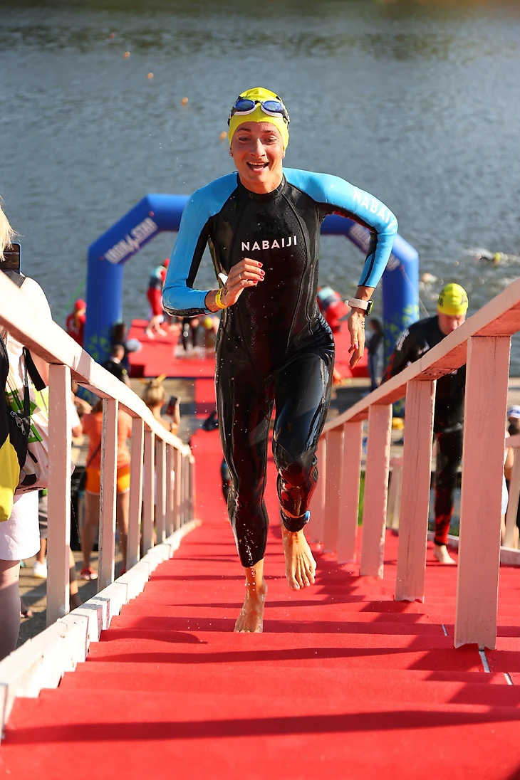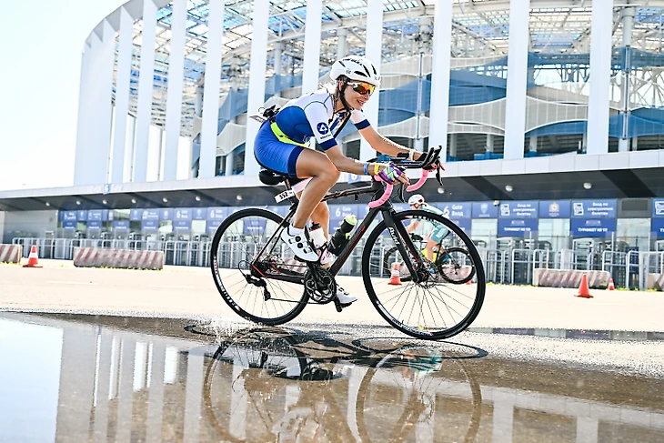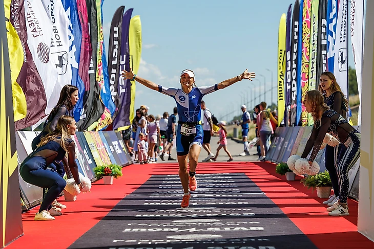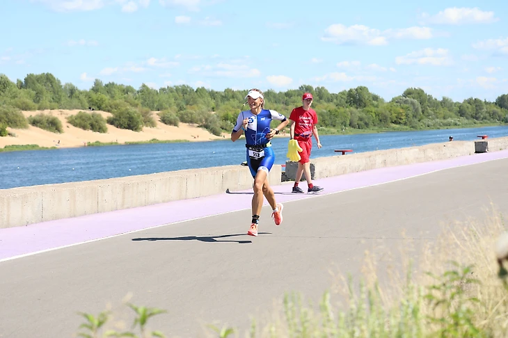 Воплощение 9-летней мечты Предыстория такова: Впервые в студенческие годы увидев триатлон, я поразилась. - "Как на это способен человеческий организм!Они точно-Железные люди! ...А на что способен мой организм?? Хочу так же!!! Бег-это моё. На веле умею, я так думала. А вот с плаванием по "лягушачьи" и боязнью воды это было малореализуемо." Тогда я себе поставила цель для исполнения мечты-после вуза обязательно научусь плавать и вступлю в ряды триатлетов. Сказала себе и отложила в ящик на долгие годы. Дело сдвинулось лишь после 2-х декретов. Когда дети своим бесстрашием к познанию и обучению сподвигли на затормозившееся саморазвитие. Серьезная подготовка началась, купив слот на свой Первый Триатлон на Irontar113. Ещё и в родном городе,Нижнем Новгороде, и тоже Впервые там проводившийся! Почему то меня это сильно привлекло для выбора города! Я Была уверена,что всем приезжим понравится эта локация! Ведь предположительно догадывалась, где может пролегать трасса. Приезд к открытию Экспо и далее все дни как в тумане. В тумане эмоций счастья, что я здесь!..среди других многоопытных триатлетов. Такое состояние эйфории и наслаждения от атмосферы спортивного праздника. Как будто, в "приступ сладкоежки" откусила заветную дольку шоколада, он тает на языке,а ты таешь от наслаждения этого долгожданного вкуса. День старта,раннее утро,город спит, и лишь триатлеты движутся в точку сбора. Как прогнозировали, день начался уже жарким. Благо на доли градуса температура воды нам позволила плыть в гидрокостюме. Я чётко для себя разложила действия на каждом этапе. Первый раз, не знала на что готова, хотелось везде просто уложиться в лимит времени и финишировать. Плавание и впервые почти 2 километра в открытой воде. Возможность увидеть элитных спортсменов,их старт под выстрел настоящей ПУШКИ...вызвало у меня дикое восхищение. В ряды сильнейших я не лезла, спокойно дождалась своей волны. Волнение было лишь из-за опасения потерять очки. Старт, занырнула, очки на месте, волнение моментально ушло и значит можно включаться и работать руками. В голове только мысли контроля движения рук и буйков..для меня было велико удивление,когда я начала обплывать впереди плывущих. Мысленно похвалила себя за это, за своё скольжение, а потом ещё несколько раз ругала себя, когда уплывала далеко налево от буйков. К концу дистанции вспоминала пошаговые действия в предстоящей транзитке. Главное необходимо было включить велокомп, чтобы успел подключиться gps. Под финиш плавательного этапа даже силы прибавить было,что я и сделала. Со словами "Лена,Ты молодец!ты смогла!Самое страшное позади!" Выскочила из водыч влетела в лестницу, ведущую в транзитку. Время, время.. Здесь уже было в голове : шлем,потом вел и всё закинуть в ящик. В транзитке пока везла вел руками, умудрилась упасть, руки не слушались после плавания. Села и вспомнила,что забыла и часы переключить, и велокомп включить. Начался Самый важный этап триатлона -велогонка. Драфтинг запрещён. Это успокаивало, значит завалы и падения маловероятны. Тренер разложил мне каждый участок трассы. Где, как переключаться, где прибавить, где поберечь силы и ноги для бегового этапа. Крутила педали и поэтапно всё выполняла,следя за питанием и своевременным питьём, т.к. жара и не хотелось дойти до состояния обезвоживания во время бега. Так же следила за скоростью. 