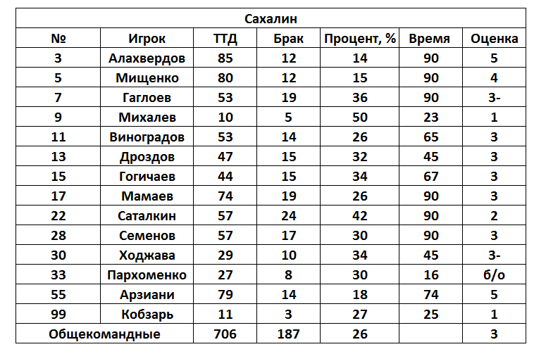 Болельщики, эксперты, в том числе и главные тренеры команд после матча выделили Александра Гаглоева. «Гаглоев доставил нам много неприятностей», – отметил главный тренер «Шинника» Александр Побегалов. Рулевой ярославцев явно польстил футболисту «Сахалина», который за весь первый тайм сделал всего 19 ТТД при 53% брака. Тот же Сергей Виноградов только с 30 по 45 минуты сделал 16 ТТД при 19% брака, разница заметна невооруженным глазом.