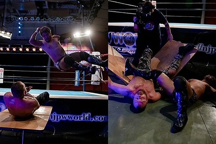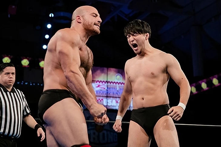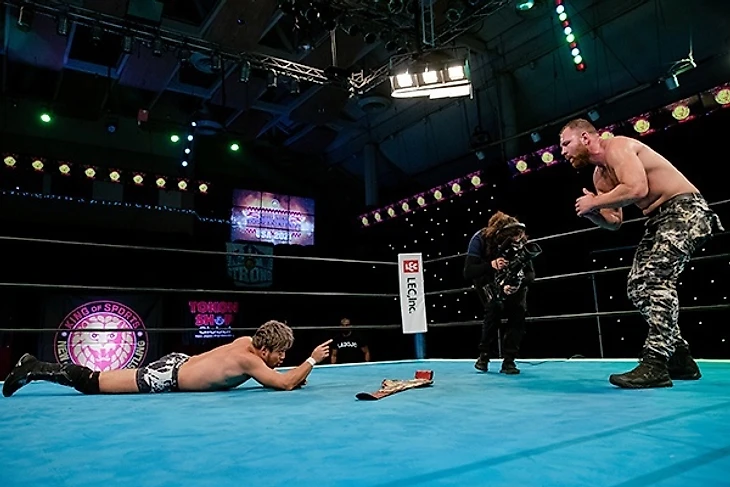 Бывшая топ-звезда американской хардкор-сцены против бывшего ветерана Pro Wrestling NOAH. Оба бывших рестлера WWE, а теперь участники ростера NJPW - проверенные временем, травмами и не самой завидной участью, пришли друг к другу через развитие не самого желаемого и даже непланируемого противостояния, но сумевшие в нынешних обстоятельствах попытаться хоть что-то сделать для самого поединка реальную живую атмосферу. Причём это уже было также разбавлено проверочным командным поединком с выпуска AEW Dynamite за 4 февраля - там они впервые столкнулись между собой и показали как будет выглядеть их бой за чемпионство США.