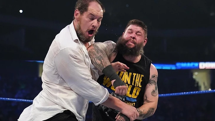 Разбитый Корбин появился на арене, и, надо отметить, он прям хуже и хуже с каждым еженедельником выглядит. Он взял микрофон, напомнив фанатам, что удача в последнее время совсем от него отвернулась. Что еще печальней, если все так продолжится, то совсем скоро он вынужден будет объявить себя банкротом. Фанаты отреагировали без особого энтузиазма на эти слова, и уж точно без эмпатии, на что Бэрон сказал, что это и есть проблема современного общества. Когда люди, вроде него, оступаются, общество хочет, чтоб он ни в коем случае не получил шанса снова подняться. Корбин пообещал, что это последний раз, когда он обращается к аудитории. Дело в том, что он привык к определенному уровню жизни, поэтому чтоб этот уровень жизни вернуть себе, он нуждается в том, чтобы каждый из зрителей на арене пожертвовал как минимум тысячу долларов. Тем более, он собирается упростить процесс пожертвований. К его телефону подсоединен сканнер кредитных карт, поэтому людям, видимо, достаточно будет просто поднять их… и тут на арене появился Кевин Оуэнс. Бэрон предположил, что Кев появился, чтобы также внести свою лепту в помощь Корбину, но, увы, он не уверен, что его сканнер работает с канадскими картами. Оуэнс прервал его, ведь он вышел явно не для того, чтобы помочь. Канадец вышел, чтобы сказать, что Бэрону нужно остановиться. Перестать клянчить у фанатов и унижать себя. Не так давно, Кевин пытался подбодрить Корбина. Он думал, что они похожи. Кевин тоже совершал ошибки в прошлом, но, в отличие от Корбина, извлек из них урок. Оуэнс думал, что Бэрон сам хочет помочь себе, но очевидно, это не так. Корбин пытается использовать эмпатию людей в своих корыстных целях. 2 недели назад он лишил Балора шанса побиться за Вселенское чемпионство, чтобы получить титульный матч с большим чеком. В понедельник Бэрон отправился на RAW, и вымогал у МакИнтайра 100 тысяч долларов. Кто вообще просит милостыню в размере 100 тысяч? «Тот, кому нужно 100 тысяч» — ответил Корбин. Затем он попросил у Кевина хотя бы мелочь, но резко изменил свое решение, объявив, что не покинет арену, пока Кев не даст ему как минимум штуку. Оэунс согласился подарить ему тысячу долларов, но спросил у фанатов, а стоит ли делать это вообще. Реакция была скорее отрицательной, на что Кевин сказал, что раз фанаты настолько не хотят видеть Корбина, он сделает все, чтобы Бэрон покинул арену. Но для того, чтобы получить тысячу, Корбин должен сделать кое-что: победить канадца в матче один на один прямо сейчас. Но есть еще одно условие. Если Бэрон проигрывает, он заканчивает клянчить у людей помощь, унижать себя и WWE, и наконец возьмет себя в руки. Корбин согласился, отметив, однако, что не попал бы вообще в эту ситуацию, если бы Кевин не открыл свой… Кев провел ему Станнер!